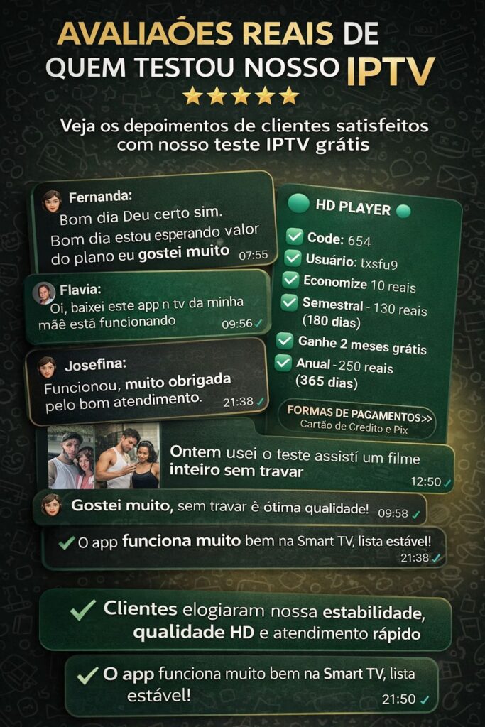 Clientes que fizeram o teste IPTV grátis relatam alta qualidade e estabilidade: